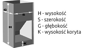 materiał: blacha ocynk + k.o.; koryto PCV